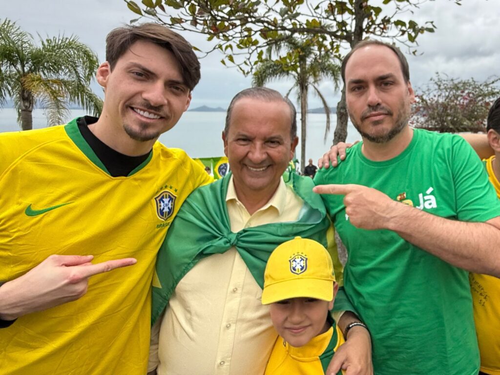 O mesmo local também foi palco do ato convocado por representantes da Direita de Santa Catarina, em apoio ao ex-presidente Jair Bolsonaro e em repúdio ao STF. Jorginho participou do encontro e posou para fotos ao lado de seu neto, Vítor Mello e dos filhos de Bolsonaro, Jair Renan e Carlos Bolsonaro, pré-candidato a deputado federal e pré-candidato ao senado, respectivamente.